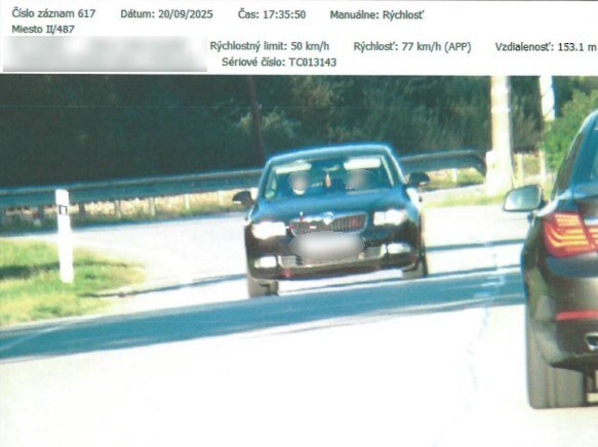 TURZOVKA. Policajti z Obvodného oddelenia PZ Turzovka zastavili 28-ročného vodiča vozidla Škoda Superb, ktorý šiel cez obec rýchlosťou 77 km/h namiesto povolenej päťdesiatky.