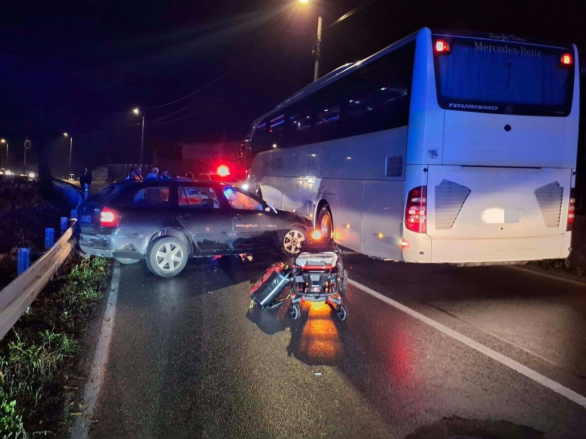 O 4:40 hod. došlo k zrážke autobusu a osobného automobilu, pričom sa zranila jedna osoba.